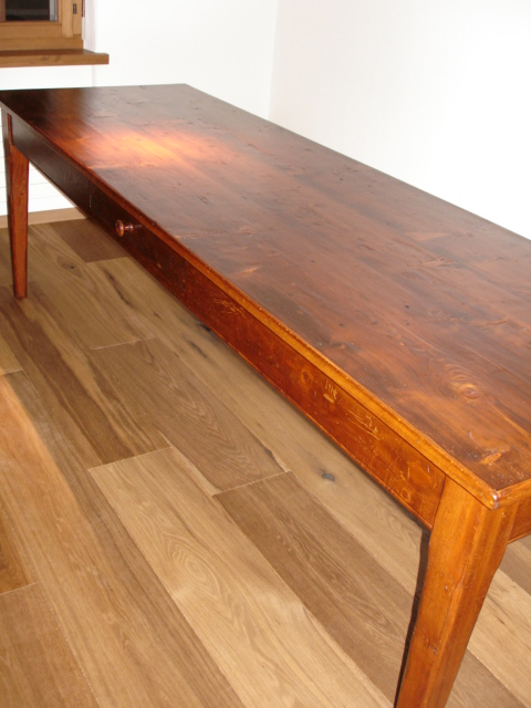 Tavolo rustico in abete 2.70×0.80 un cassetto. cod. 449